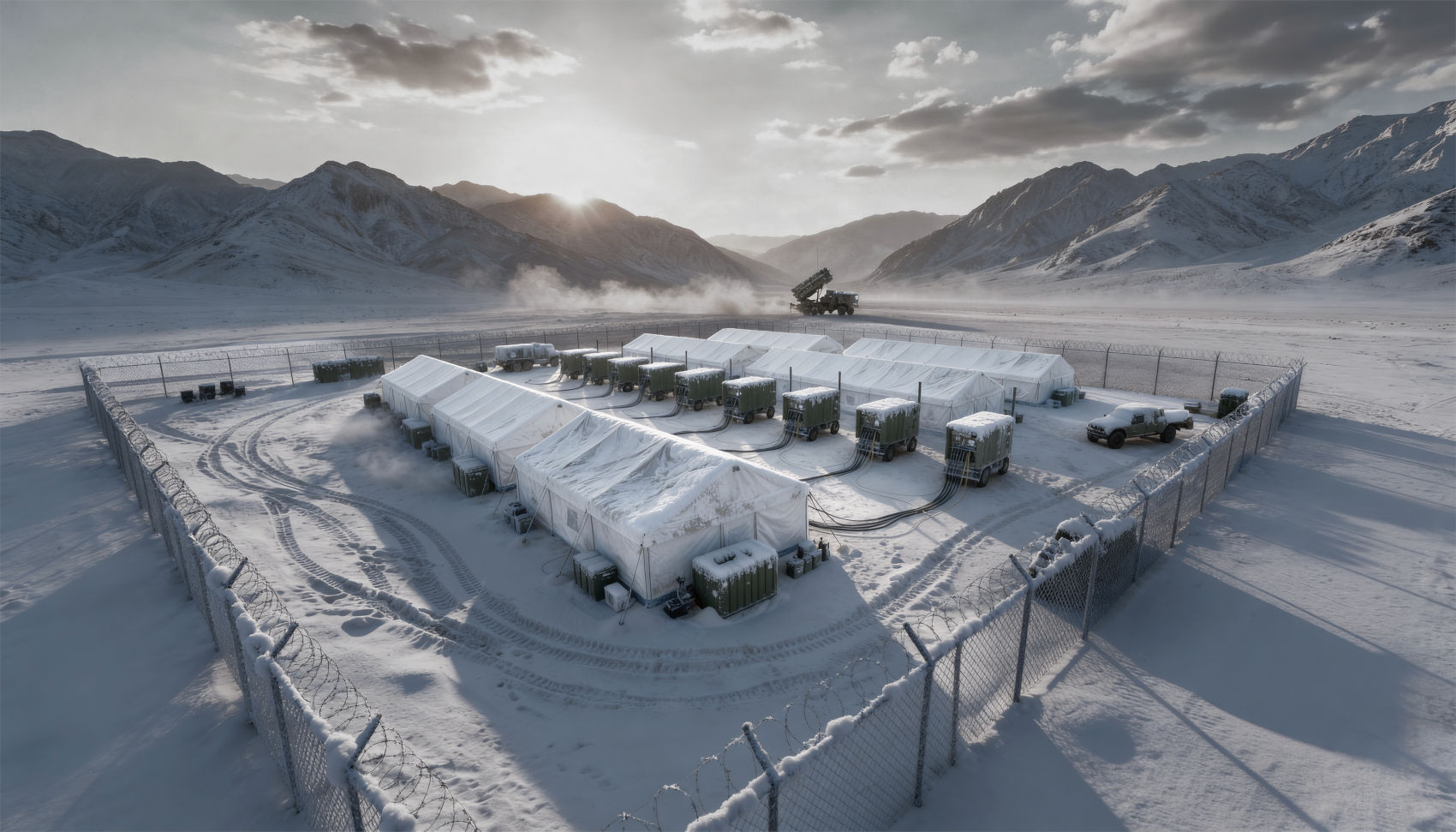 Herausforderung: Militärische Einsätze finden weltweit unter extremen Bedingungen statt, zum Beispiel in arktischer Kälte oder in sandigen, heißen Wüstenregionen. Konventionelle Energiesysteme stoßen unter diesen Belastungen häufig an ihre Grenzen.